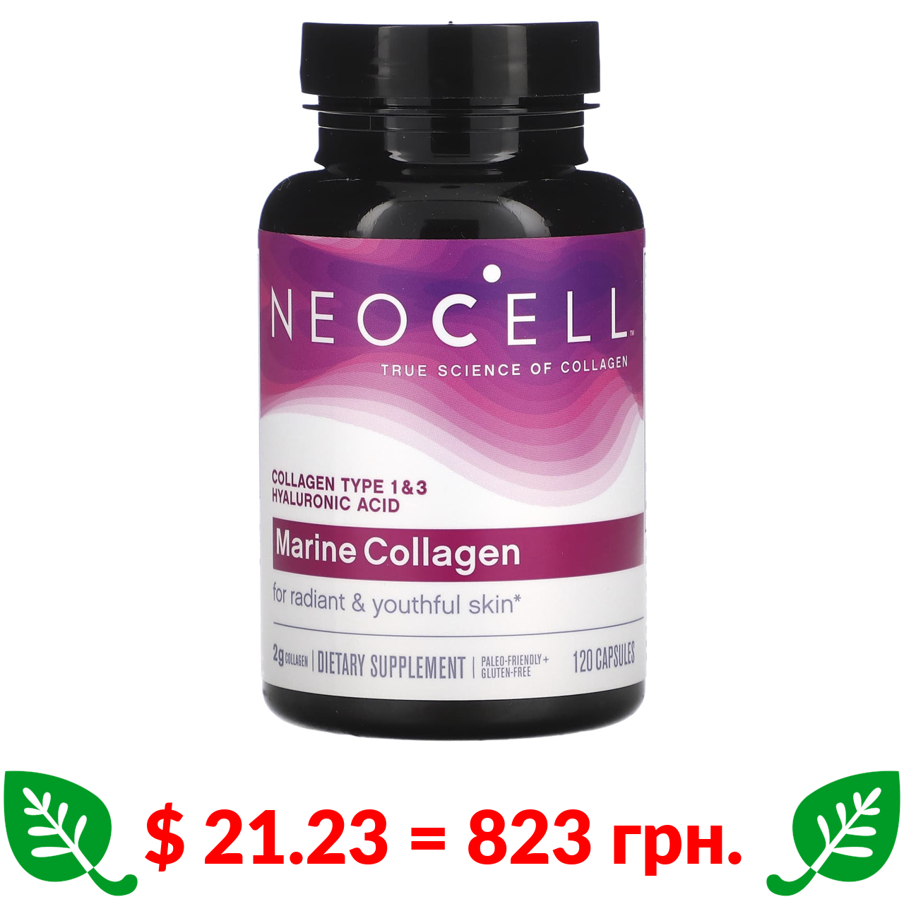 $ 21.23 = 823 грн. NeoCell, морской коллаген, 120 капсул