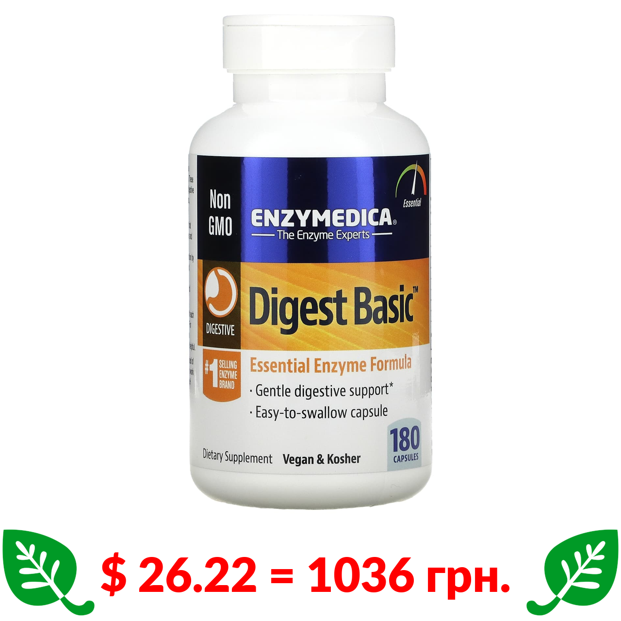 $ 26.22 = 1036 грн. Enzymedica, Digest Basic, підтримка травлення, 180 капсул