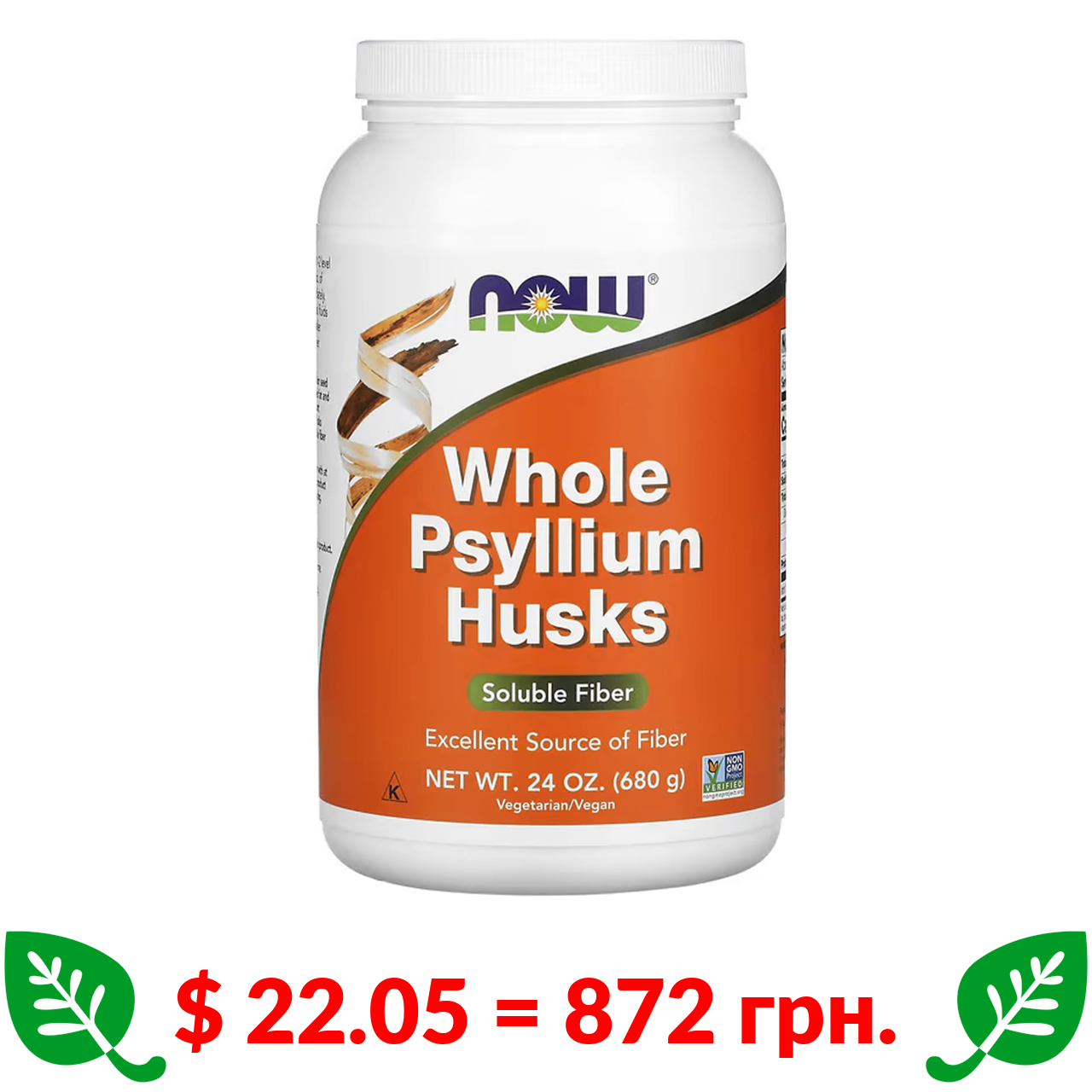 $ 22.05 = 872 грн. Now Foods, цільне лушпиння подорожника, 680 г (24 унції)