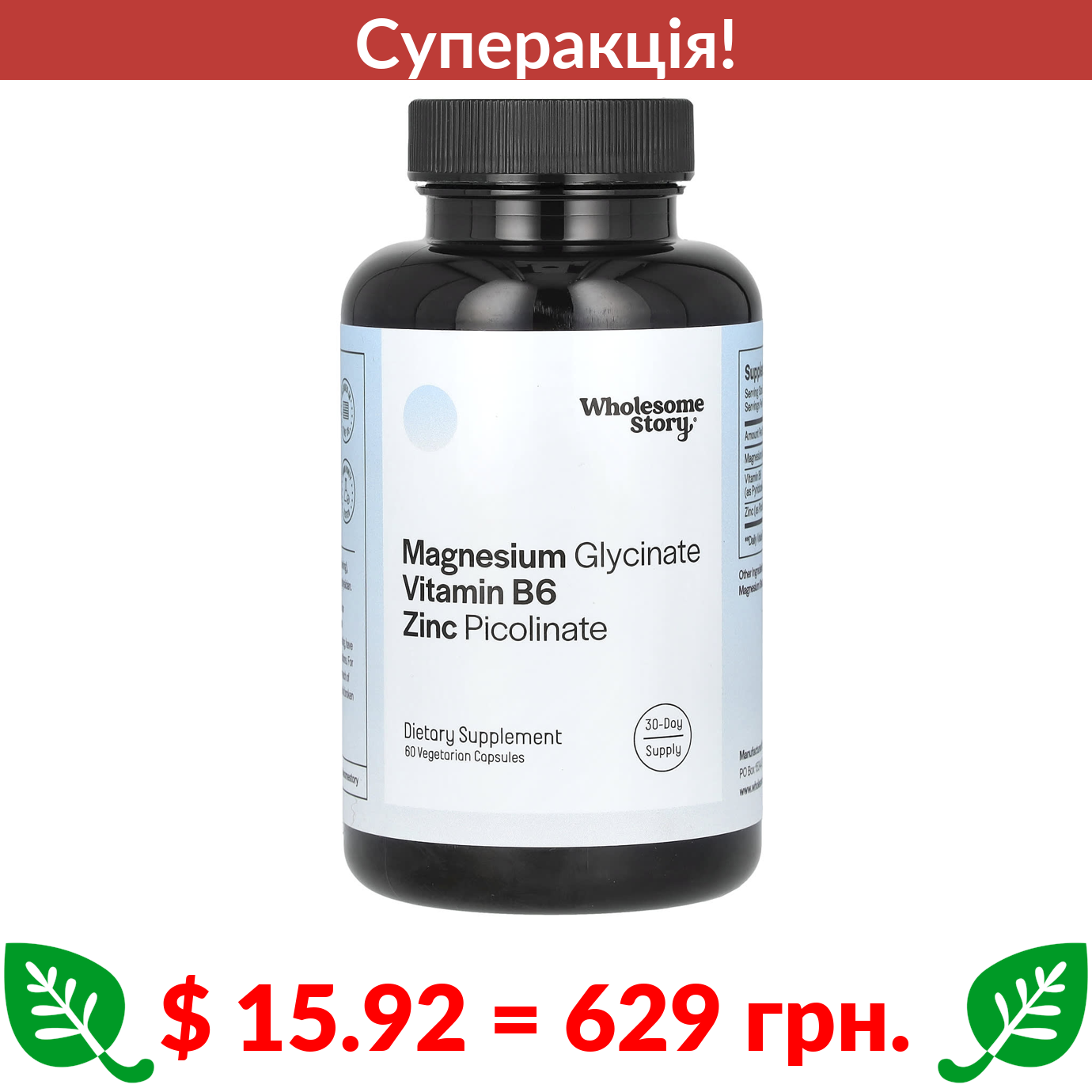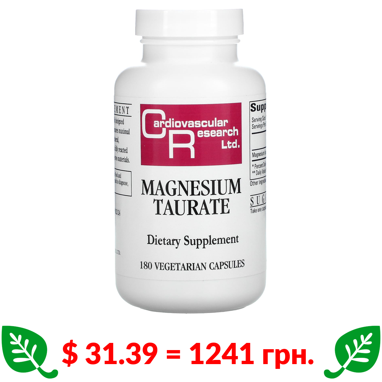 $ 31.39 = 1241 грн. Cardiovascular Research Ltd., таурат магнію, 180 вегетаріанських капсул