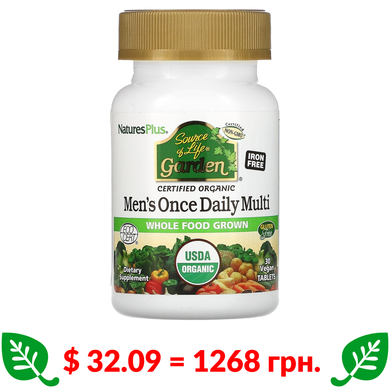 $ 32.09 = 1268 грн. Nature’s Plus, Source of Life Garden, Men’s Once Daily Multi, 30 Vegan Tablets