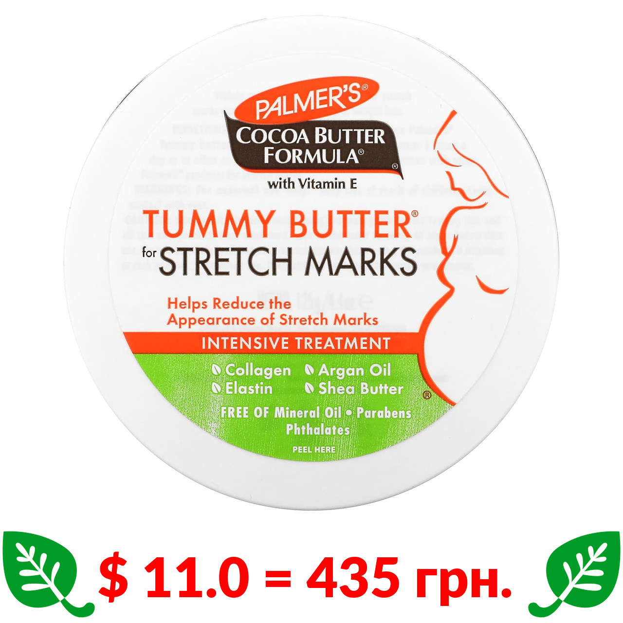 $ 11.0 = 435 грн. Palmers, Cocoa Butter Formula, Tummy Butter, масло від розтяжок, 125 г (4,4 унції)