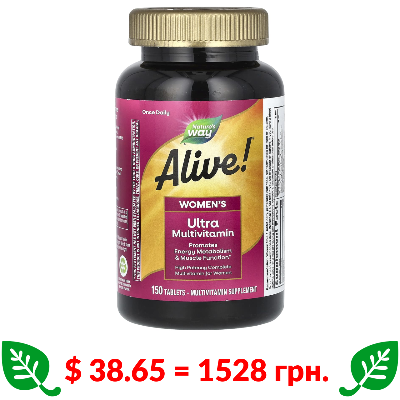 $ 38.65 = 1528 грн. ????️ у кошику ????️ Nature’s Way, Alive!, ультрамультивітаміни для жінок, 150 таблеток