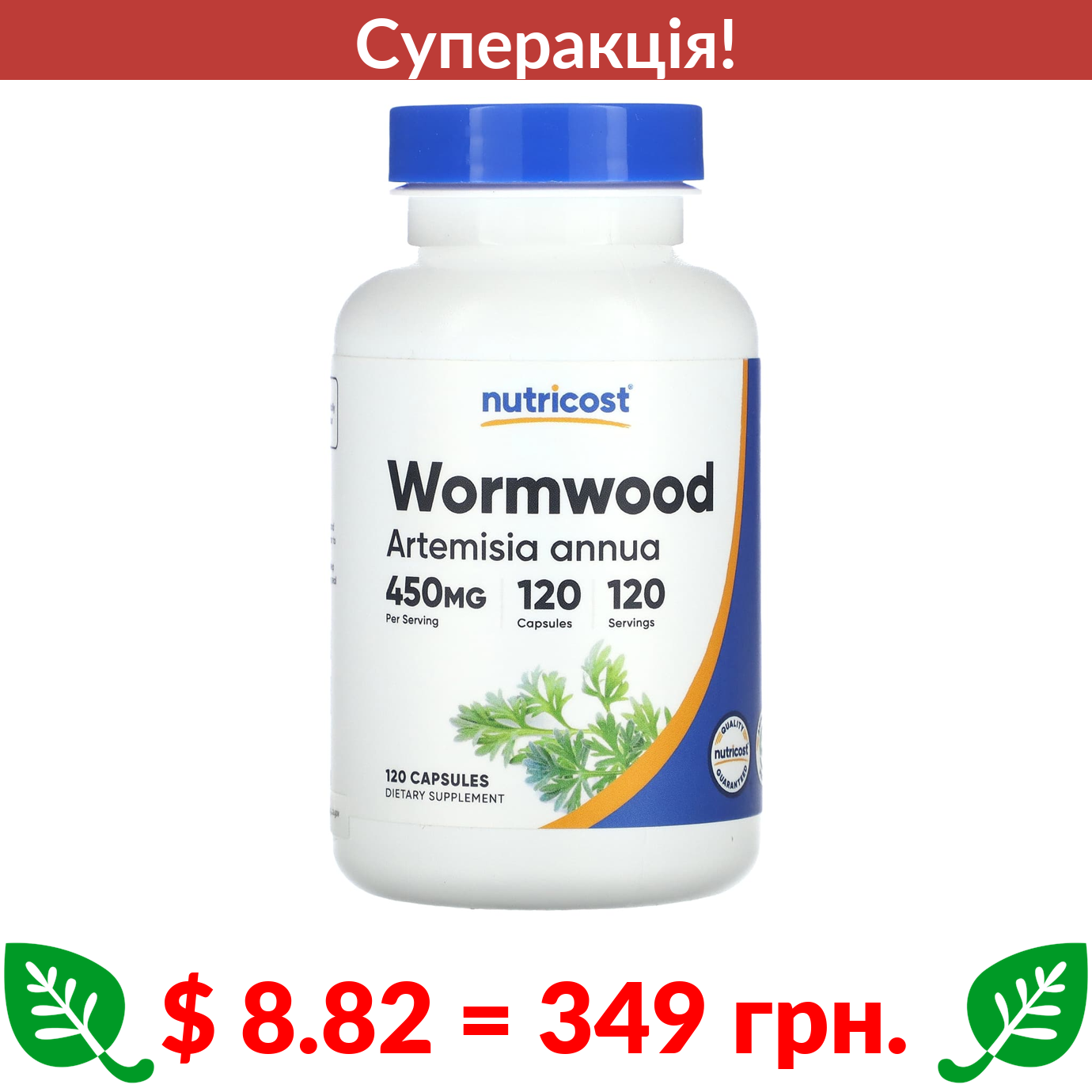 $ 8.82 = 349 грн. ???? cуперакція! ???? Nutricost, полин, 450 мг, 120 капсул