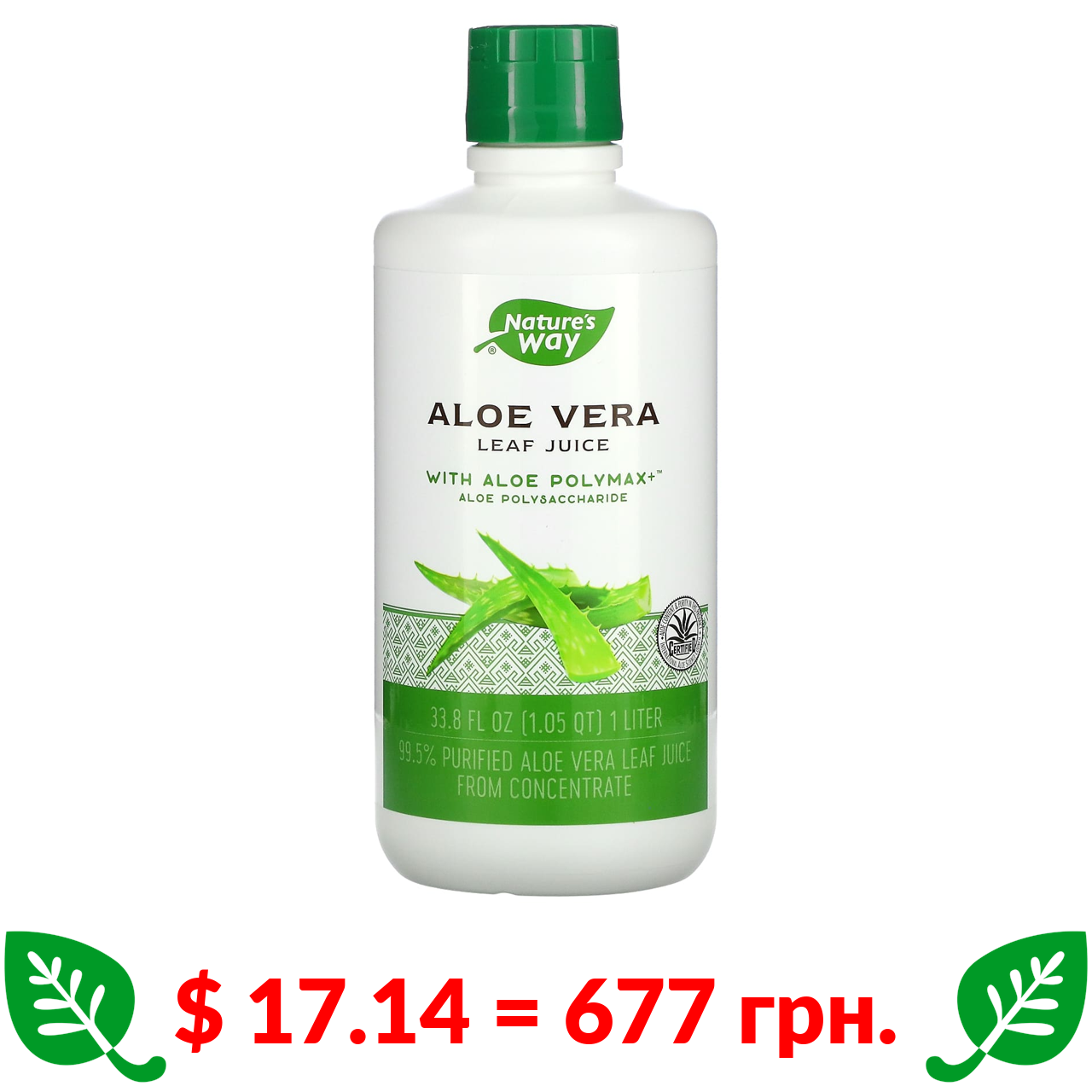$ 17.14 = 677 грн. ????️ у кошику ????️ Nature’s Way, алое вера, сік листя, 1 літр (33,8 рідк. унції)