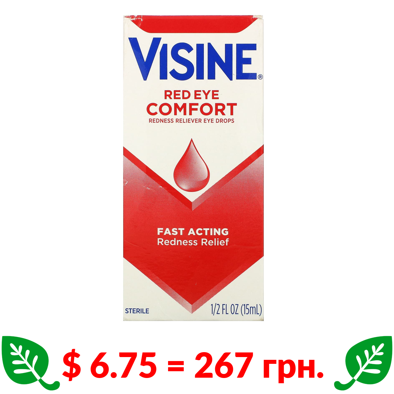$ 6.75 = 267 грн. Visine, Red Eye Comfort, краплі для очей для усунення почервоніння, 15 мл (1/2 рідк. унції)