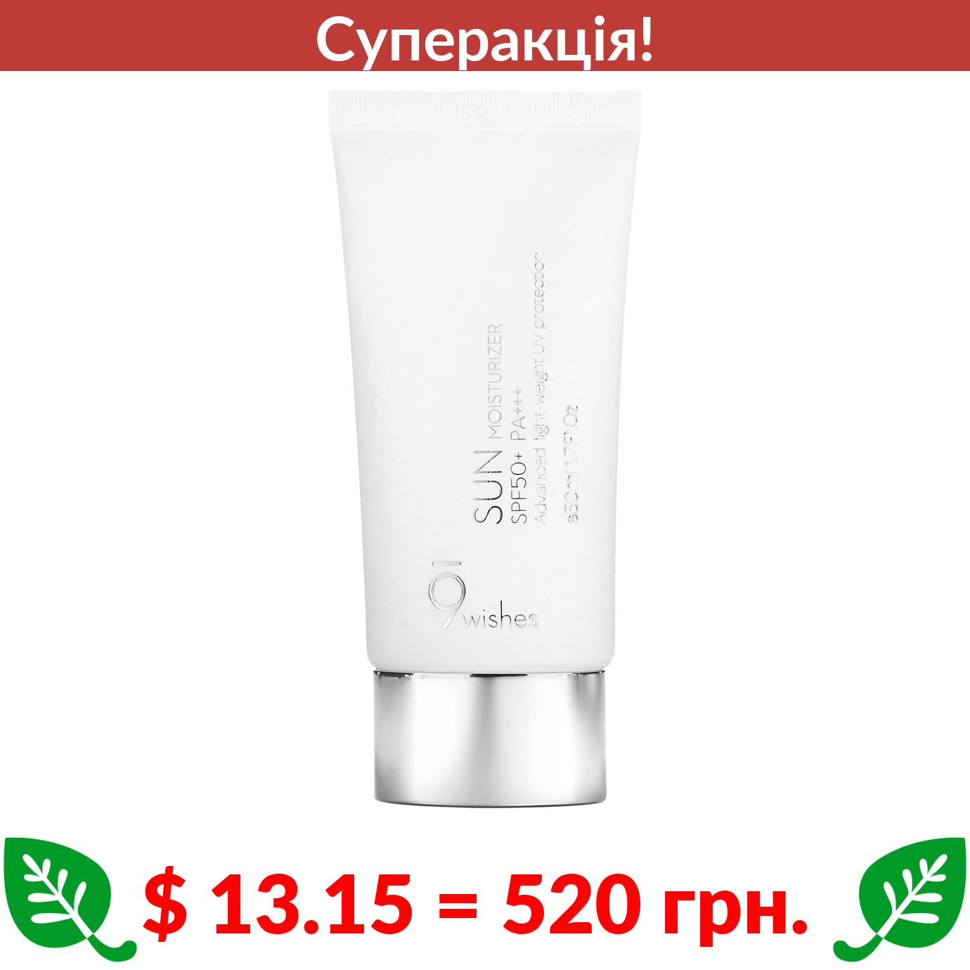 $ 13.15 = 520 грн. ???? cуперакція! ???? 9Wishes, зволожувальний сонцезахисний крем, SPF 50+ PA+++, 50 мл (1,7 рідк. унції)