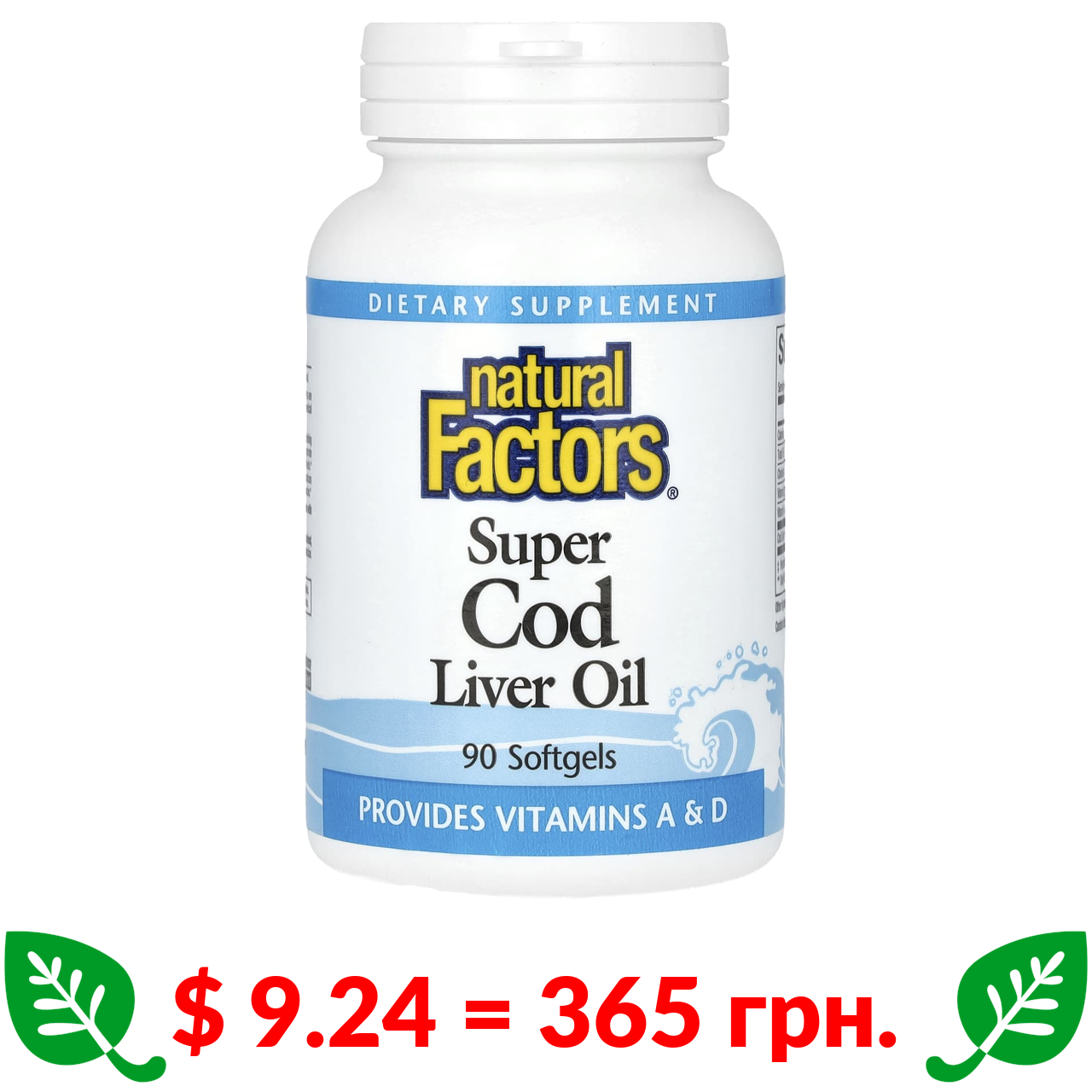 $ 9.24 = 365 грн. Natural Factors, супержир із печінки тріски, 90 капсул