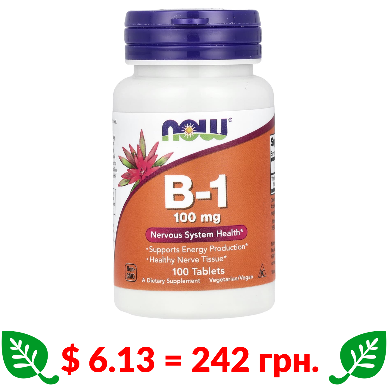 $ 6.13 = 242 грн. Now Foods, вітамін B1, 100 мг, 100 таблеток