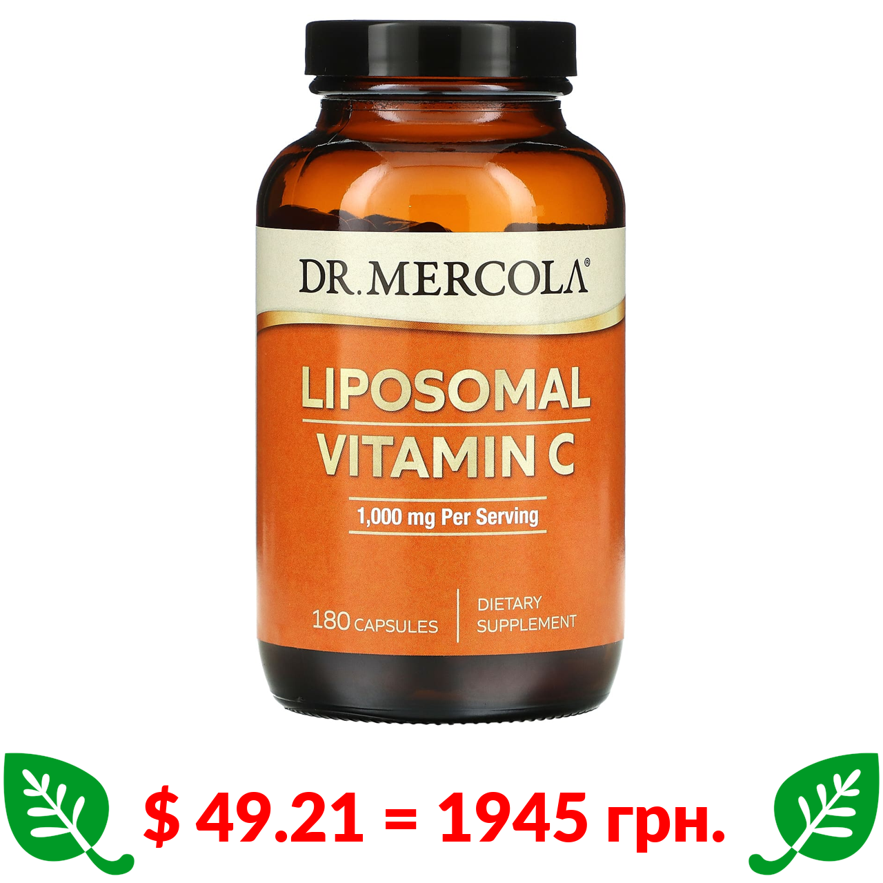$ 49.21 = 1945 грн. Dr. Mercola, ліпосомальний вітамін С, 500 мг, 180 капсул