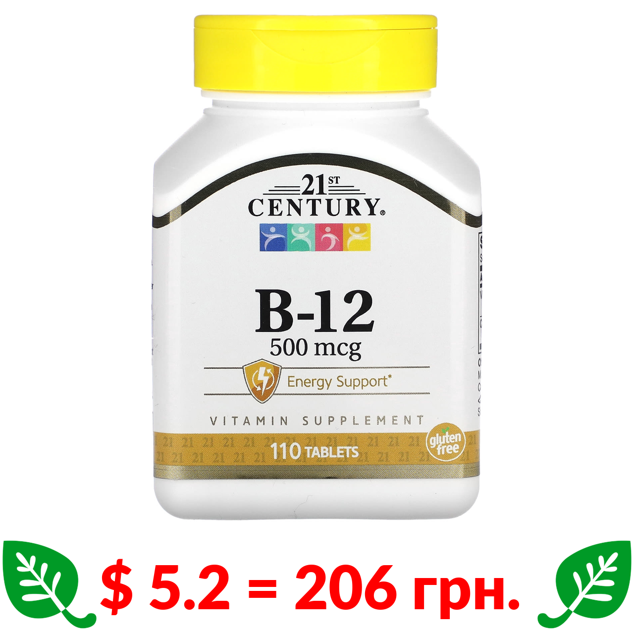 $ 5.2 = 206 грн. 21st Century, вітамін В12, 500 мкг, 110 таблеток