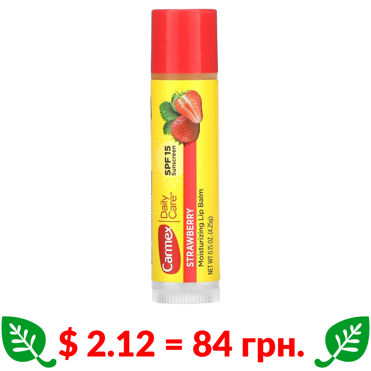 $ 2.12 = 84 грн. Carmex, щоденний догляд, зволожуючий бальзам для губ, полуниця, SPF 15, 4,25 г (15 унцій)