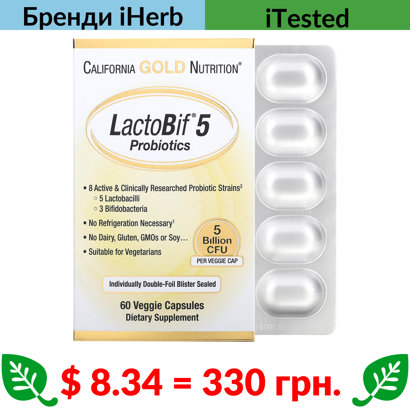 Лише $38.9 – Комбопропозиція (економія $5.0) купуйте разом з California Gold Nutrition, LactoBif 30, 30 млрд КУО, 60 вегетаріанських капсул