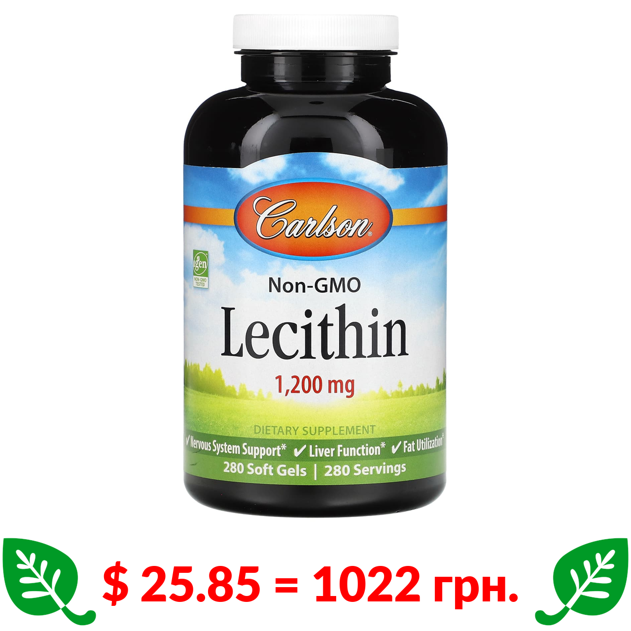 $ 25.85 = 1022 грн. Carlson, лецитин, 1200 мг, 280 м’яких капсул