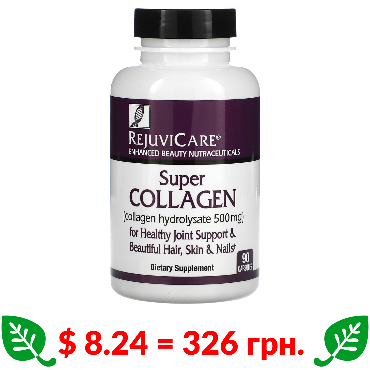 $ 8.24 = 326 грн. Rejuvicare, суперколаген, гідролізат колагену, 500 мг, 90 капсул