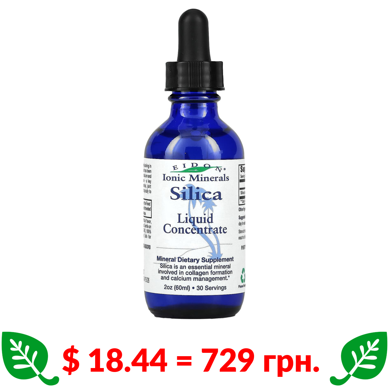 $ 18.44 = 729 грн. Eidon Mineral Supplements, діоксид кремнію, рідкий концентрат, 60 мл (2 унції)