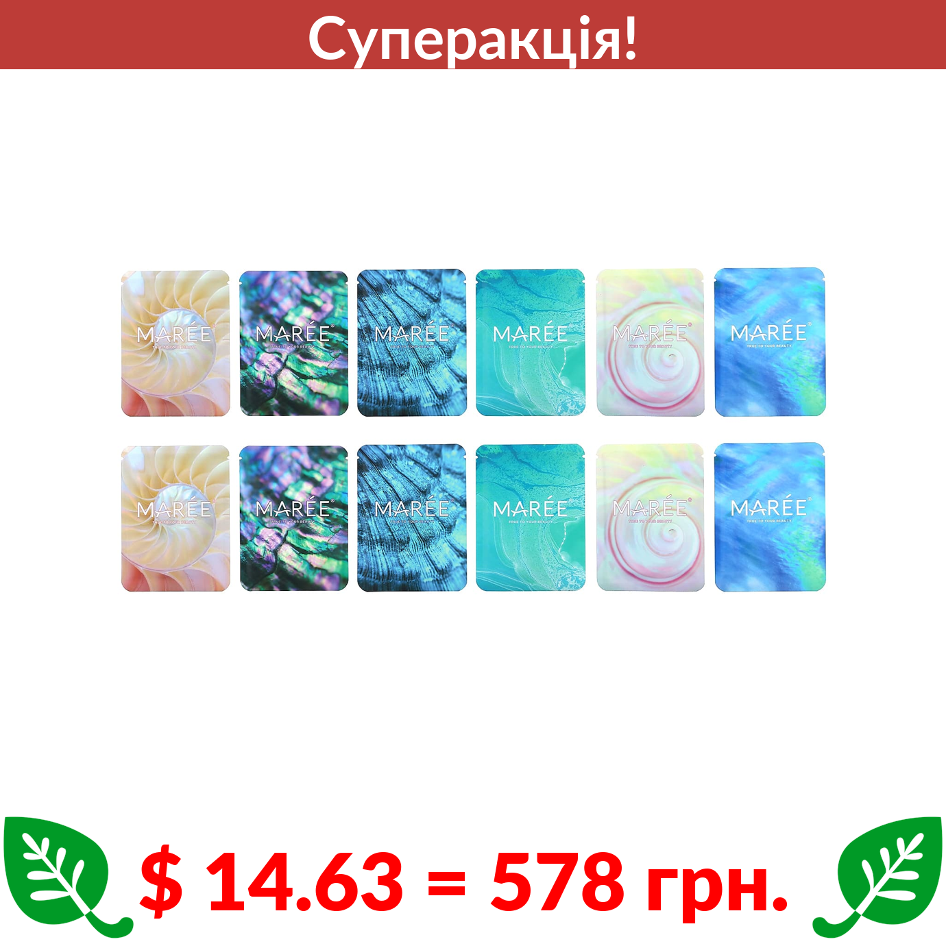 $ 14.63 = 578 грн. ???? cуперакція! ???? Maree, Marine Collagen Eye Gels, 12 Pairs, 1.32 oz (36 g)