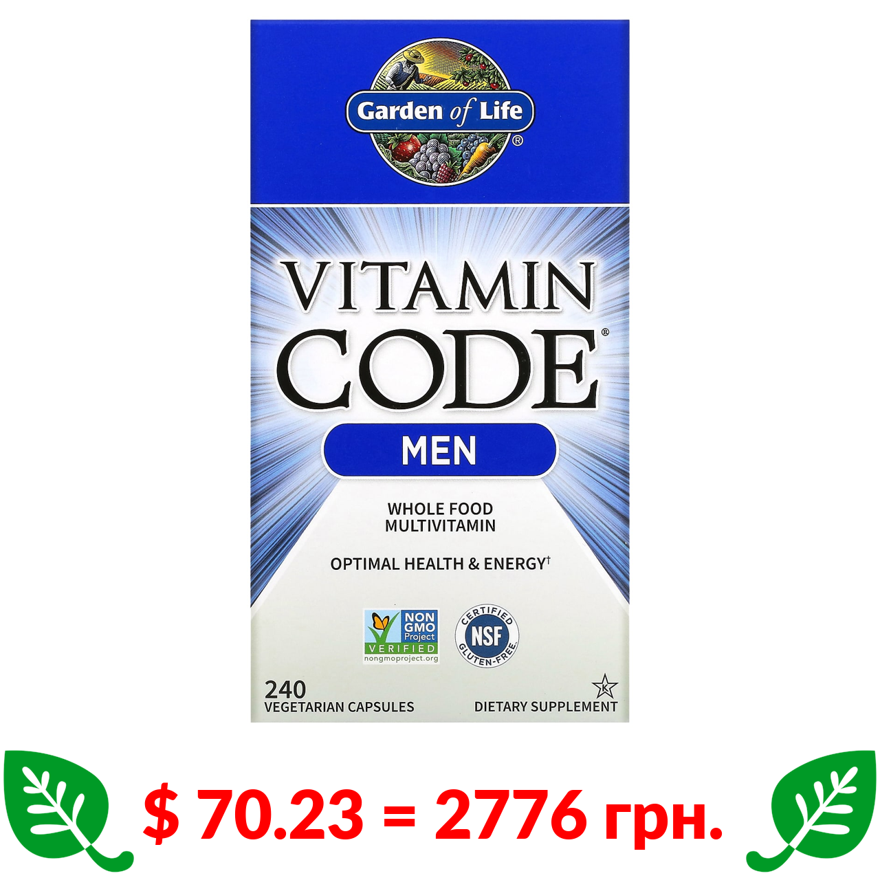 $ 70.23 = 2776 грн. Garden of Life, Vitamin Code, мультивітаміни з цільних продуктів для чоловіків, 240 вегетаріанських капсул