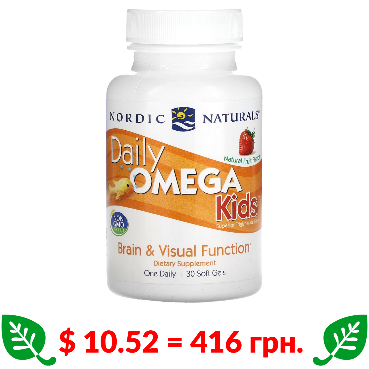 $ 10.52 = 416 грн. Nordic Naturals, омега для дітей, для щоденного вживання, зі смаком натуральних фруктів, 340 мг, 30 капсул
