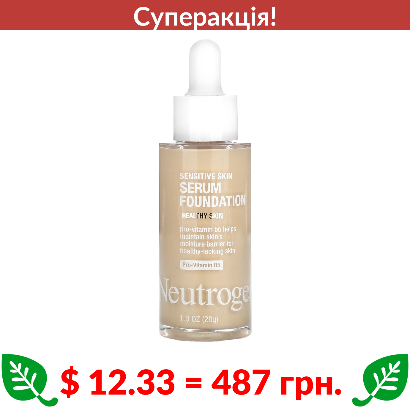 $ 12.33 = 487 грн. ???? cуперакція! ???? Neutrogena, Sensitive Skin Serum Foundation, Light 01, 1 oz (28 g)