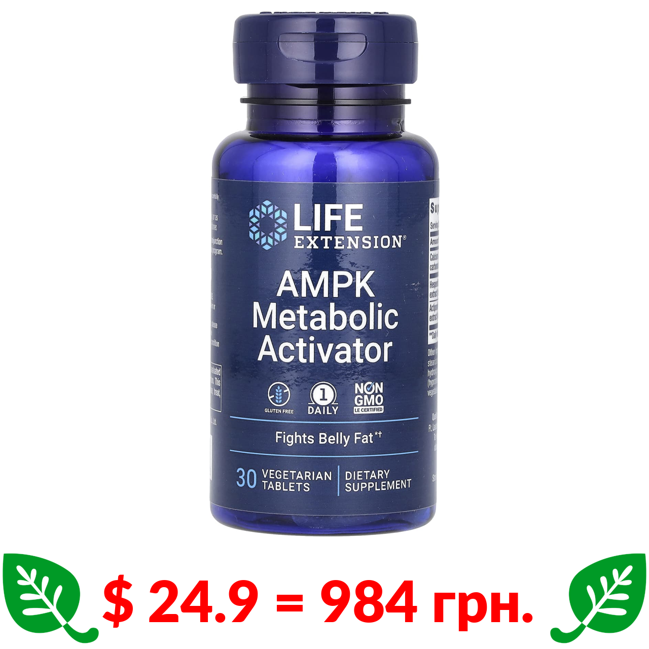 $ 24.9 = 984 грн. Life Extension, активатор метаболізма AMPK, 30 вегетаріанських таблеток