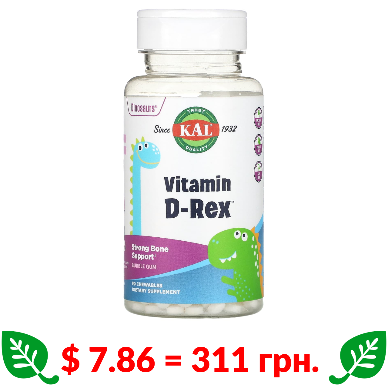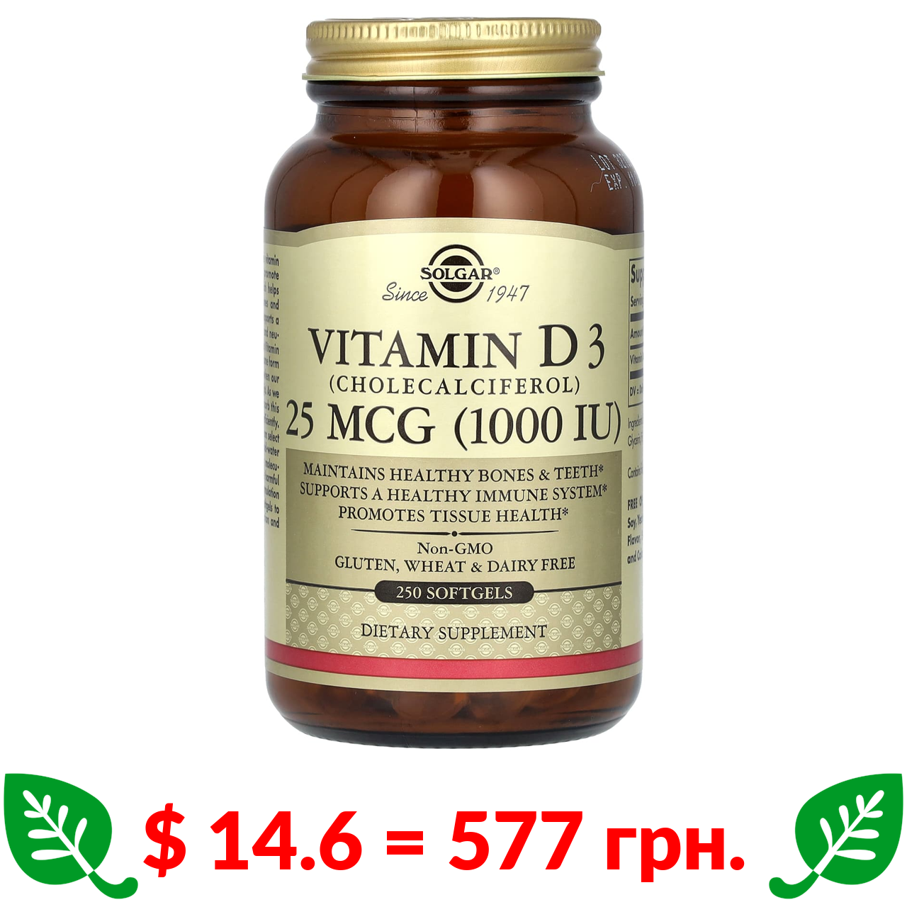 $ 11.28 = 446 грн. Doctor’s Best, вітамін D3, 125 мкг (5000 МО), 360 капсул