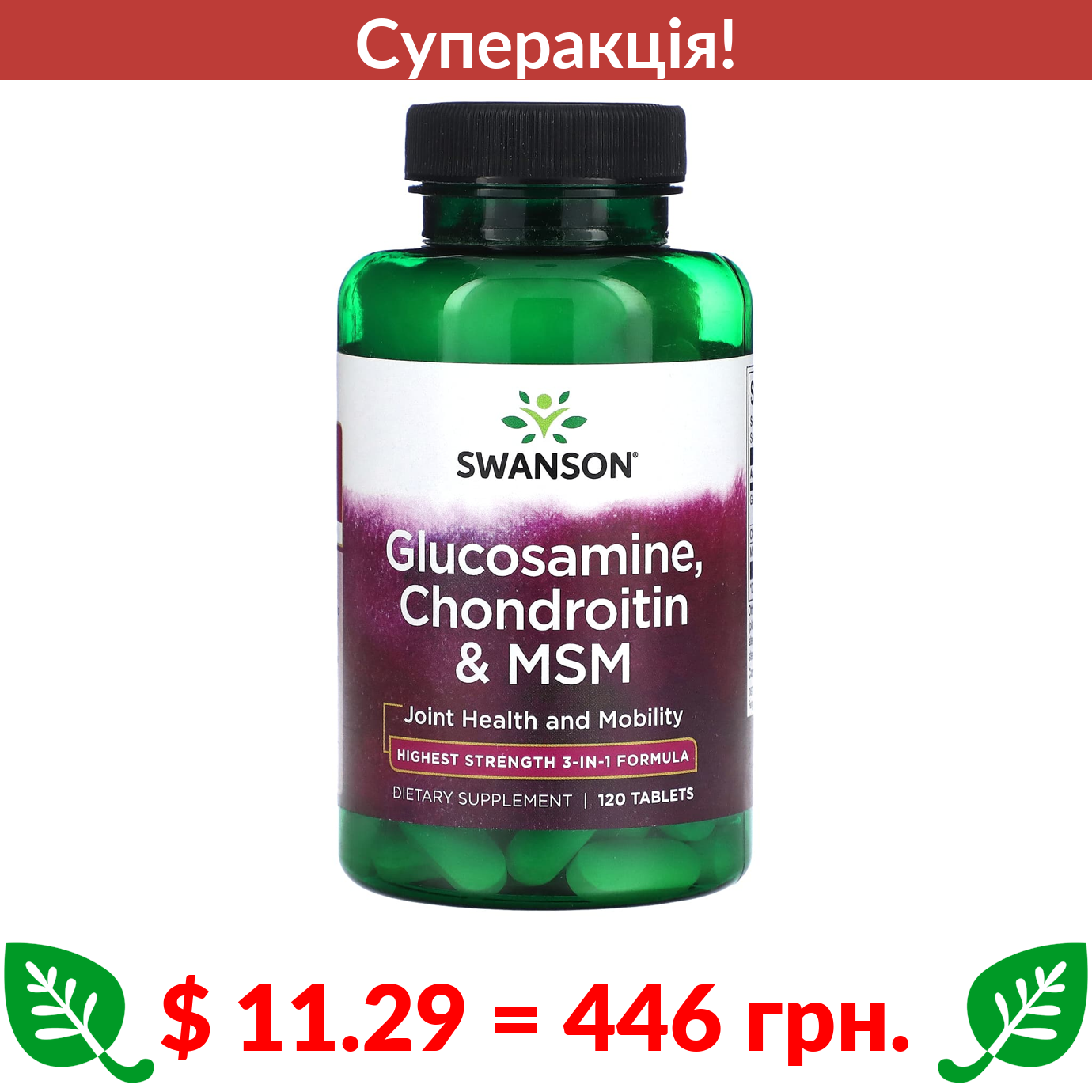 $ 11.29 = 446 грн. ???? cуперакція! ???? Swanson, глюкозамін, хондроїтин і МСМ, 120 таблеток