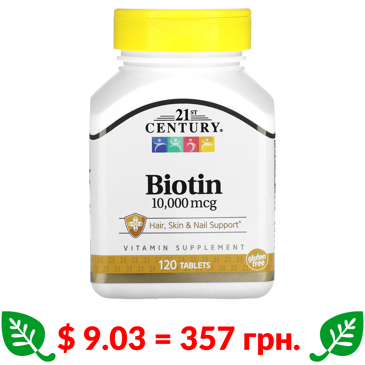 $ 9.03 = 357 грн. 21st Century, біотин, 10 000 мкг, 120 таблеток