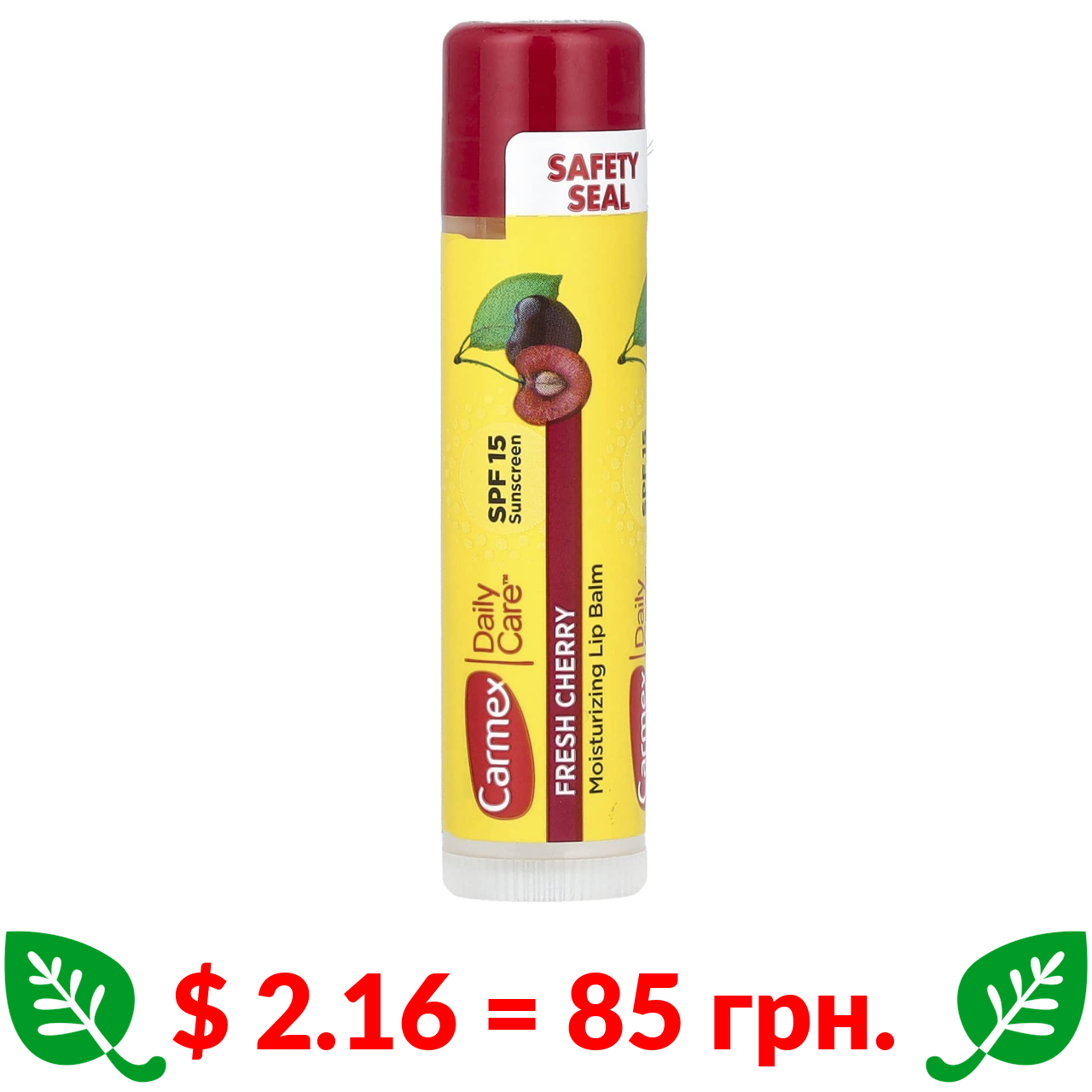 $ 2.16 = 85 грн. Carmex, Daily Care, зволожуючий бальзам для губ, свіжа вишня SPF 15, 4,25 г (0,15 унції)