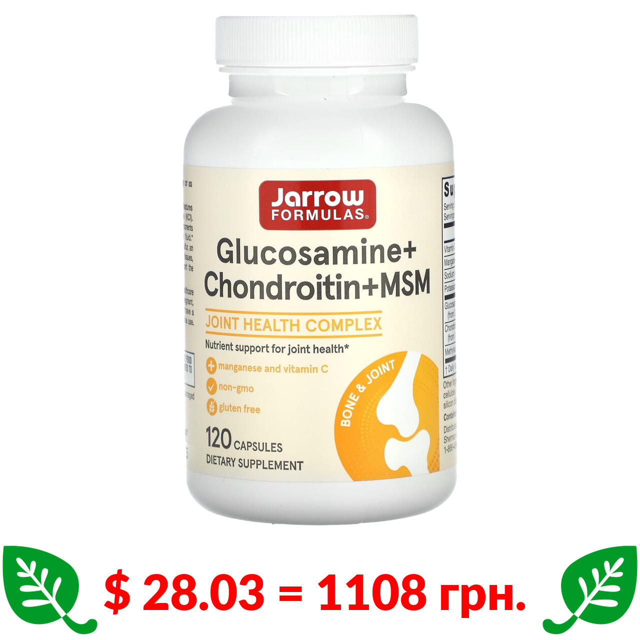 $ 28.03 = 1108 грн. Jarrow Formulas, глюкозамін, хондроїтин, МСМ з марганецем і вітаміном C, 120 капсул