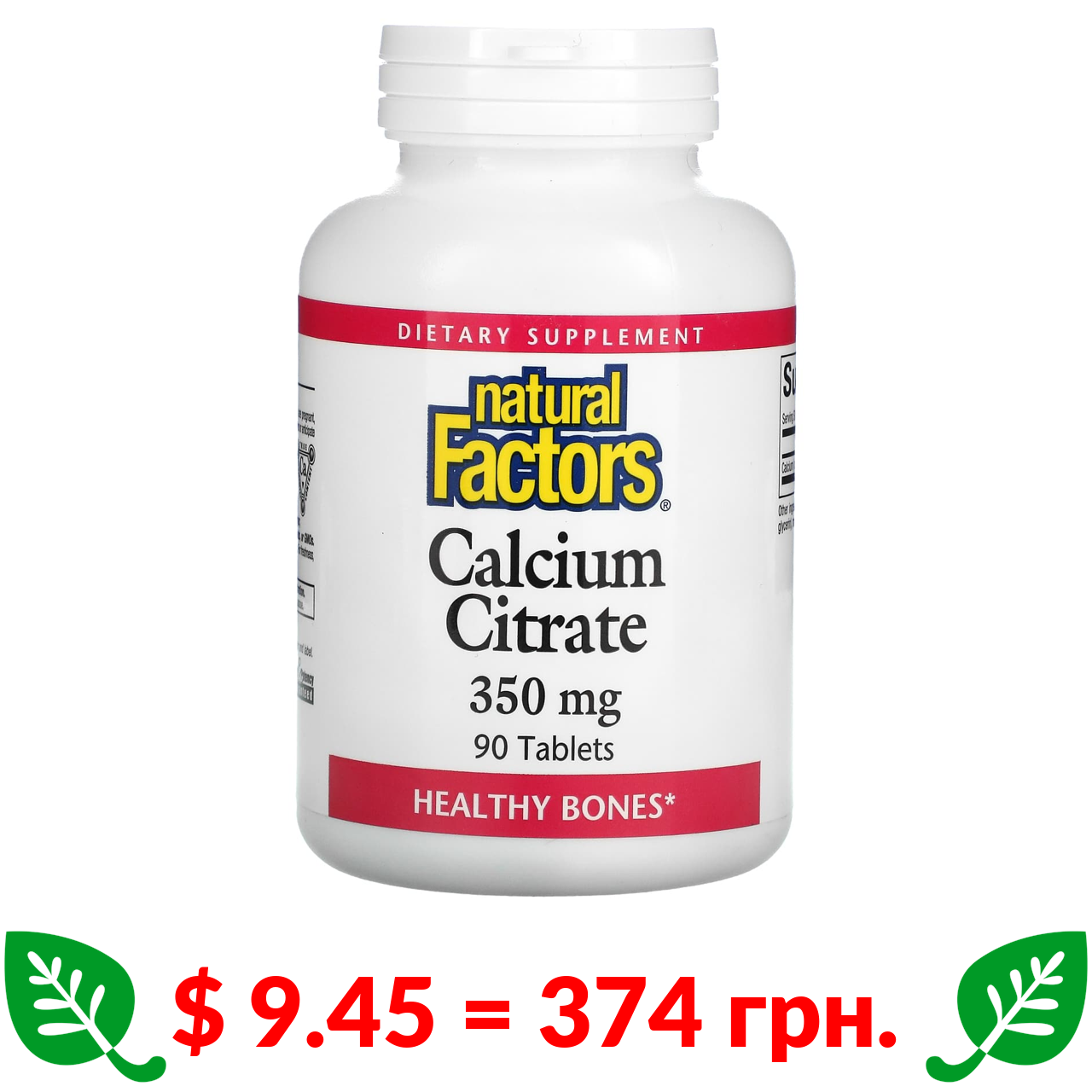 $ 9.45 = 374 грн. Natural Factors, цитрат кальцію, 350 мг, 90 таблеток