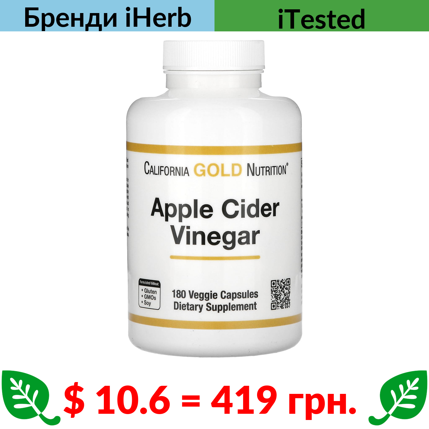 $ 10.6 = 419 грн. ????️ у кошику ????️ California Gold Nutrition, Яблучний оцет, 180 овочевих капсул