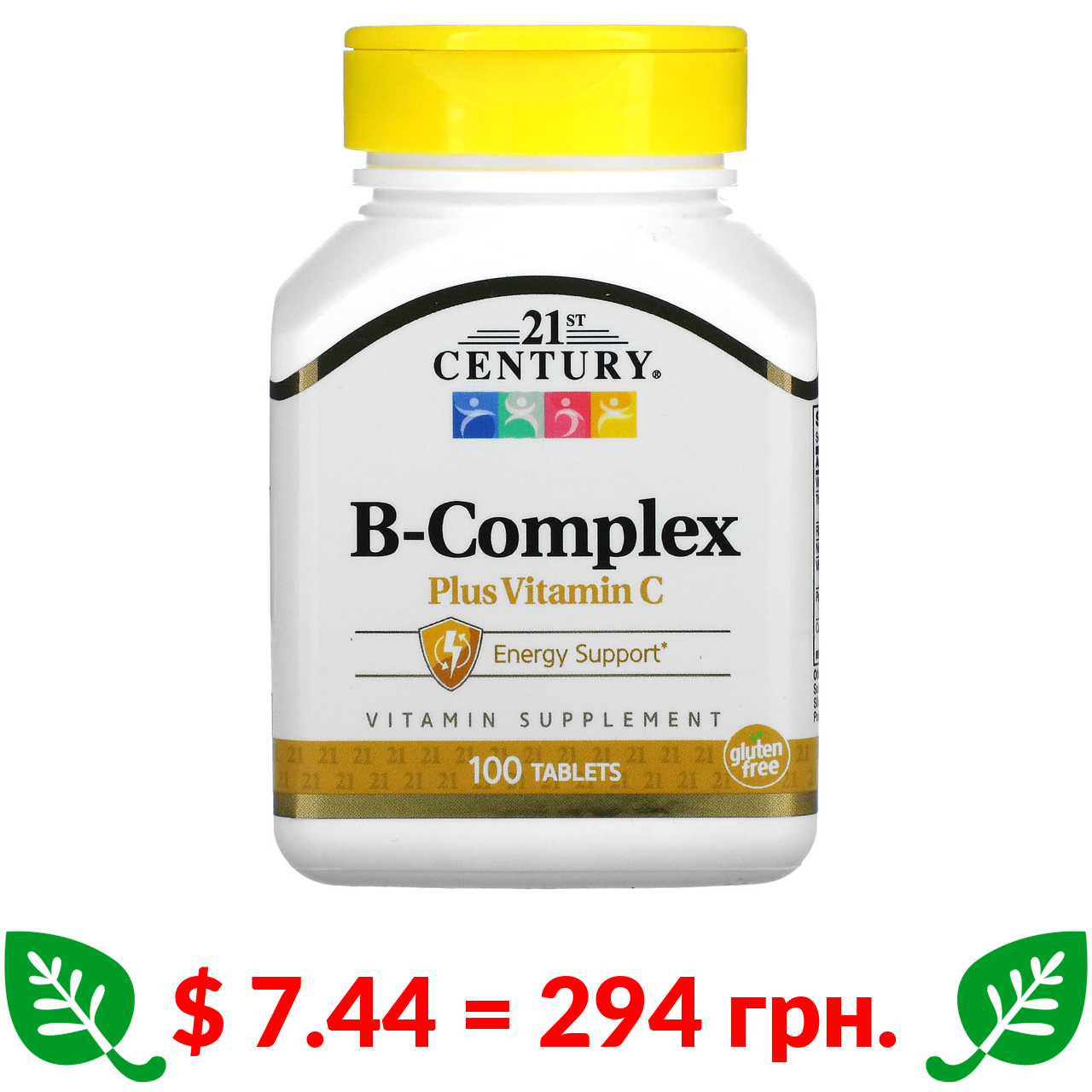 $ 7.44 = 294 грн. 21st Century, комплекс вітамінів групи B з вітаміном C, 100 таблеток