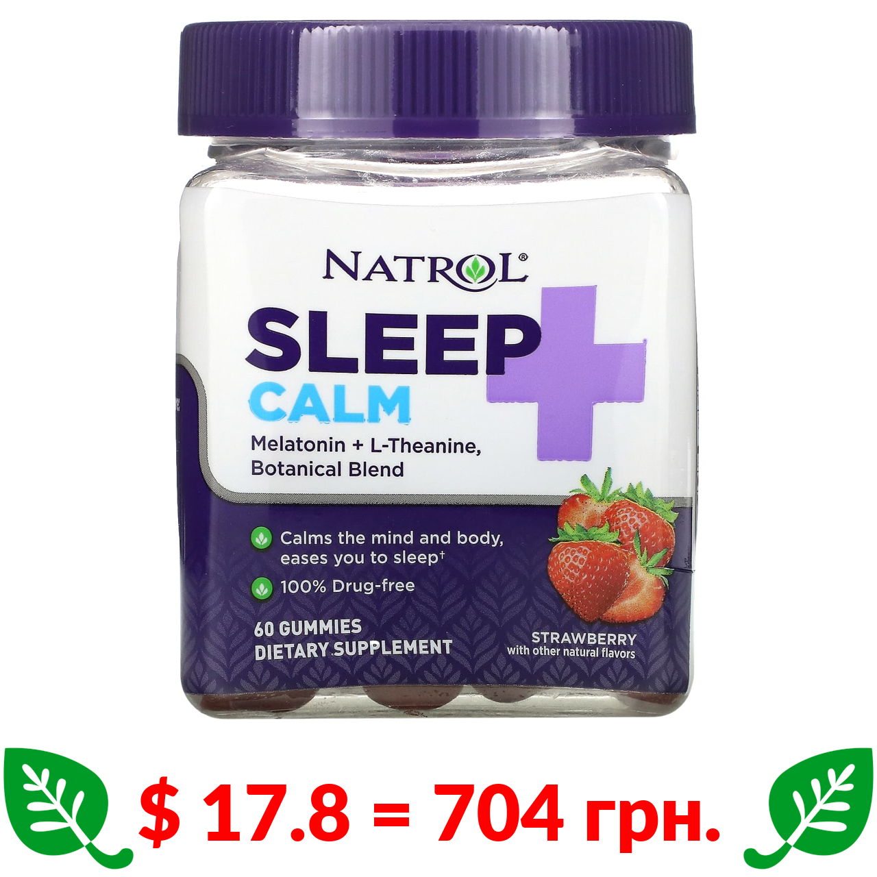 $ 17.8 = 704 грн. ????️ у кошику ????️ Natrol, Sleep + Calm, Strawberry, 60 Gummies