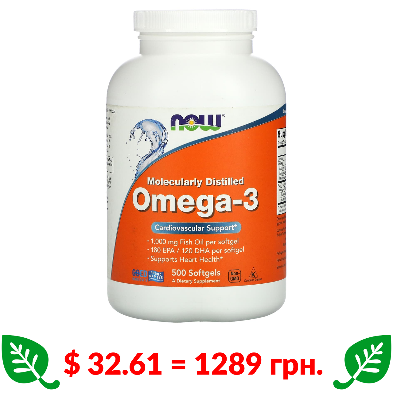 $ 32.61 = 1289 грн. Now Foods, омега-3, 500 капсул