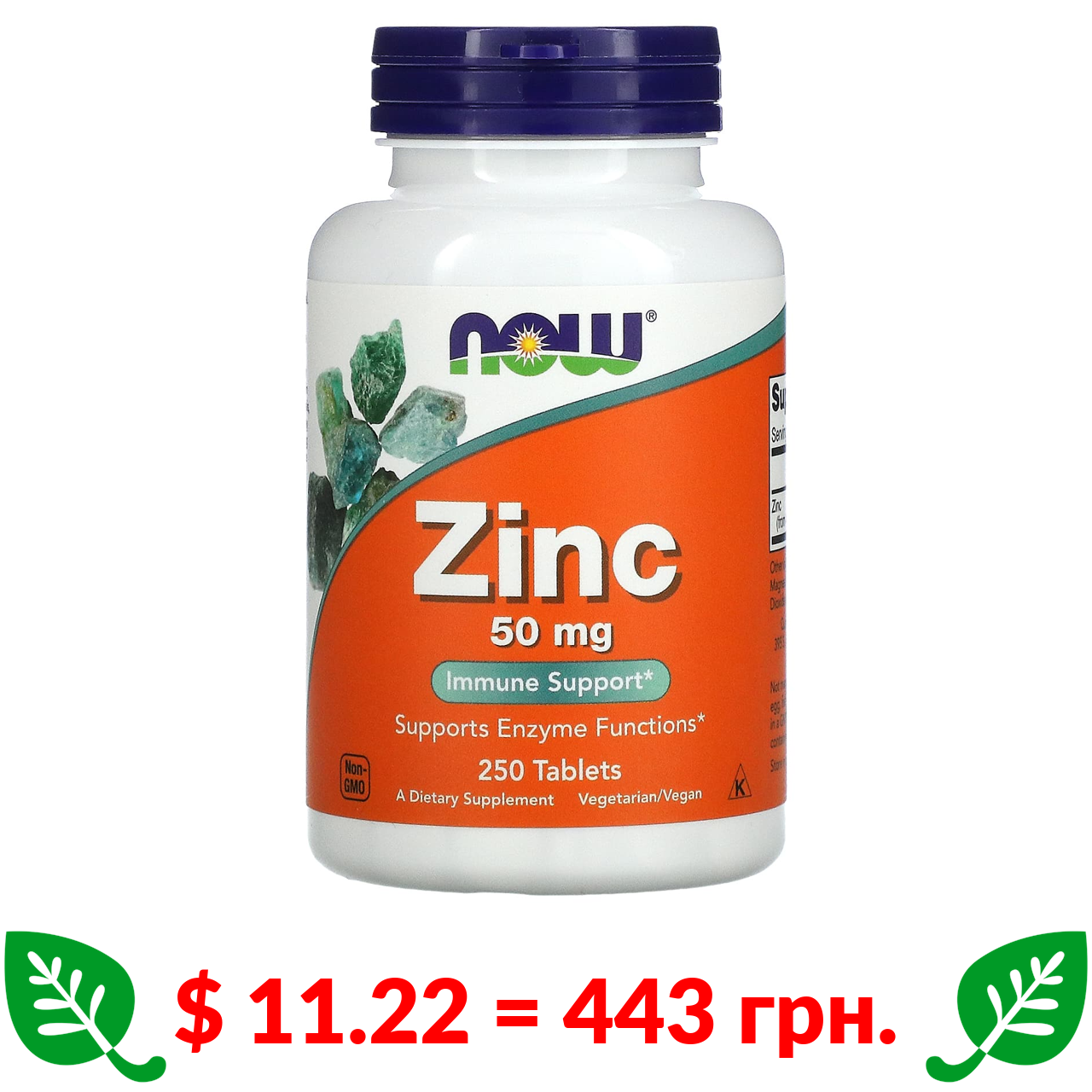 $ 11.22 = 443 грн. Now Foods, цинк, 50 мг, 250 таблеток