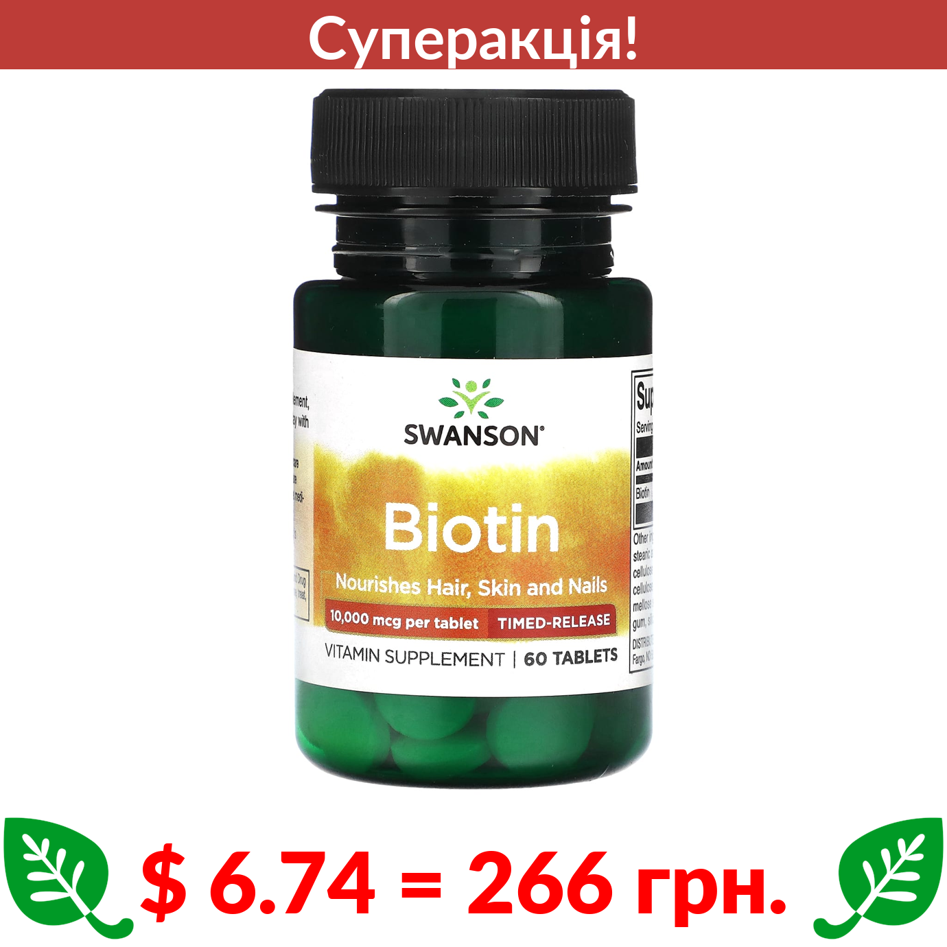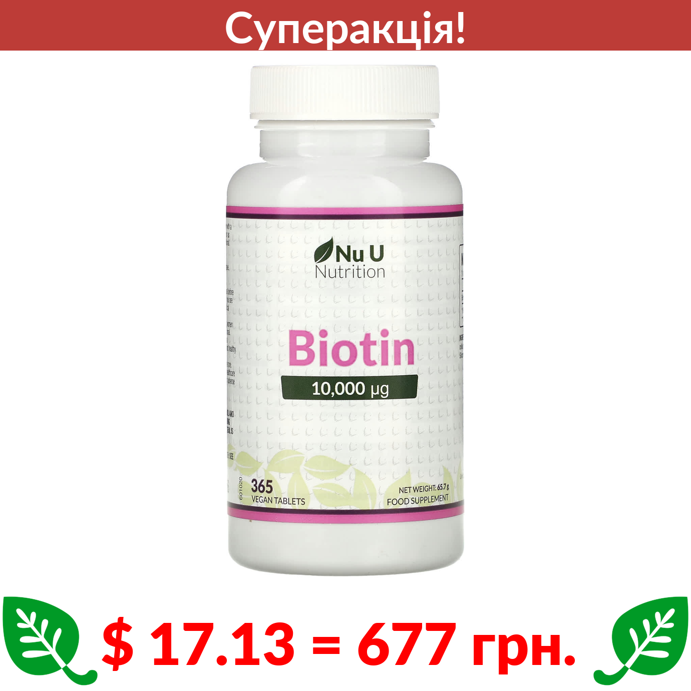 $ 17.13 = 677 грн. ???? cуперакція! ???? Nu U Nutrition, Biotin, 10,000 μp, 365 Vegan Tablets