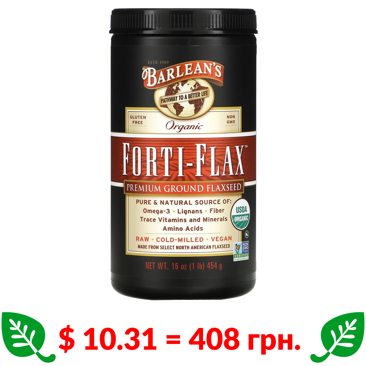 $ 10.31 = 408 грн. ????️ у кошику ????️ Barlean’s, Органічний Forti-Flax, мелене насіння льону преміум-класу, 16 унцій (454 г)