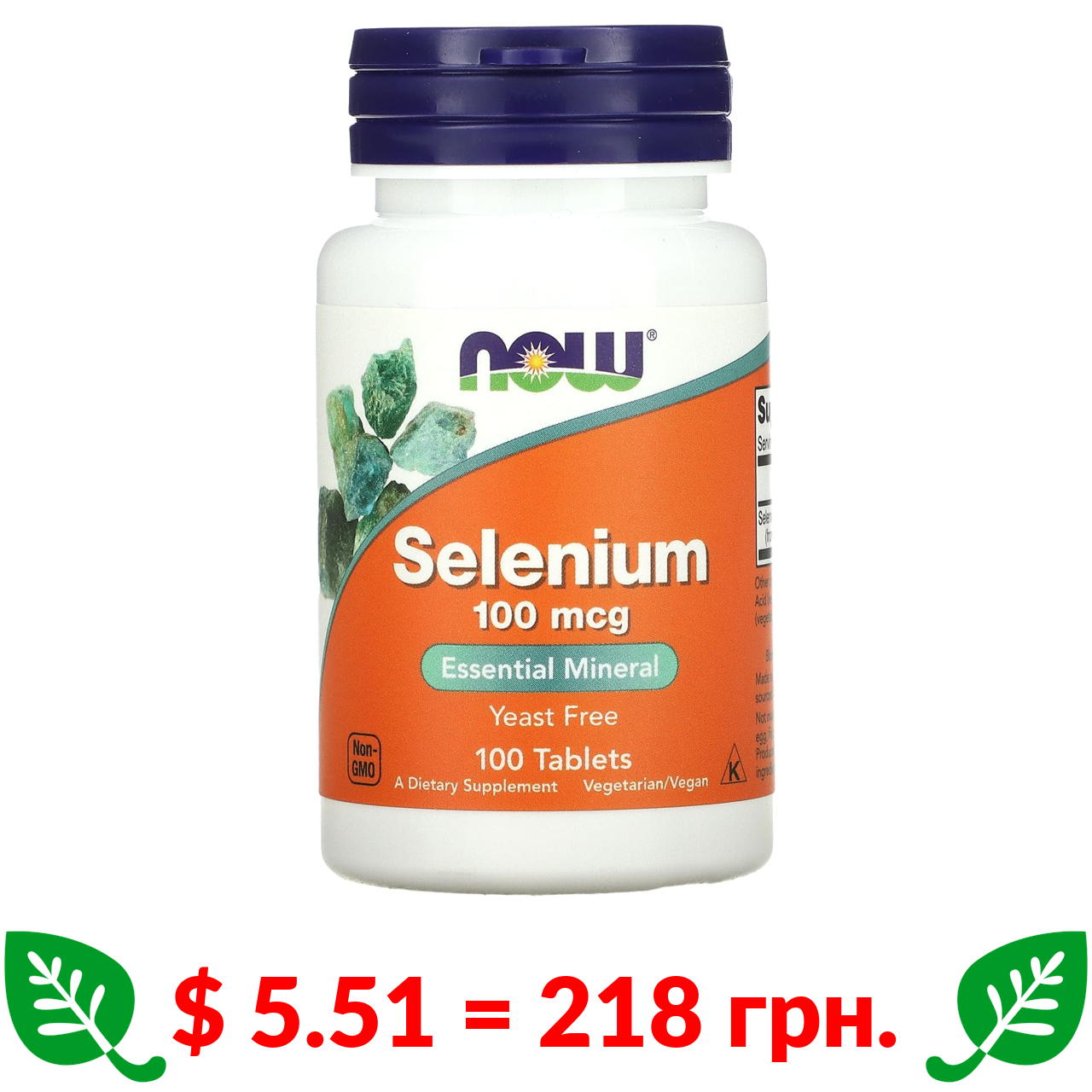 $ 5.51 = 218 грн. Now Foods, селен, 100 мкг, 100 таблеток