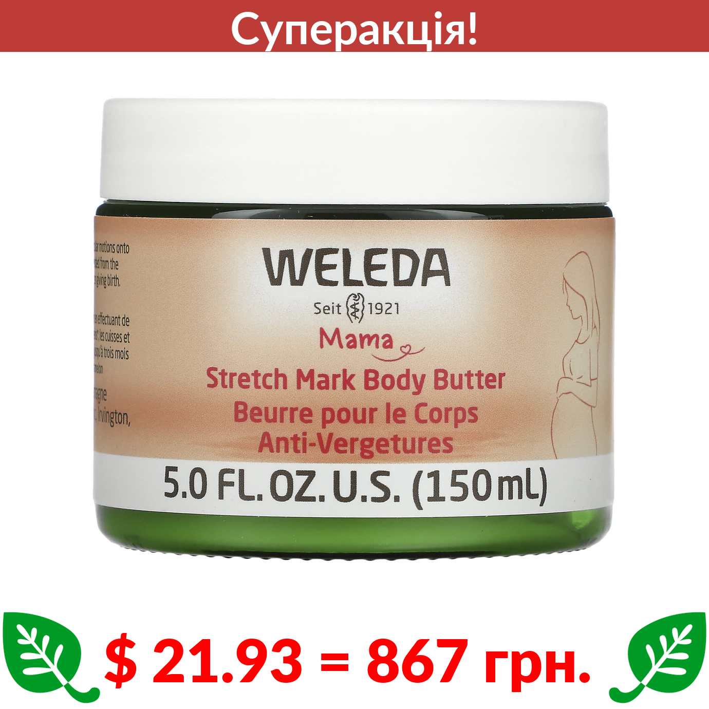 $ 21.93 = 867 грн. ???? cуперакція! ???? Weleda, Mama, масло для тіла від розтяжок, 150 мл (5 рідк. унцій)
