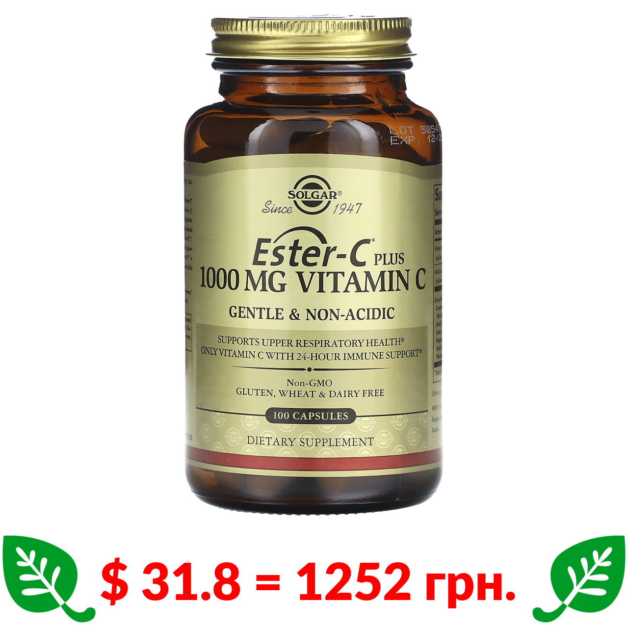 $ 31.8 = 1252 грн. Solgar, Ester-C Plus, Vitamin C, 1,000 mg, 100 Capsules