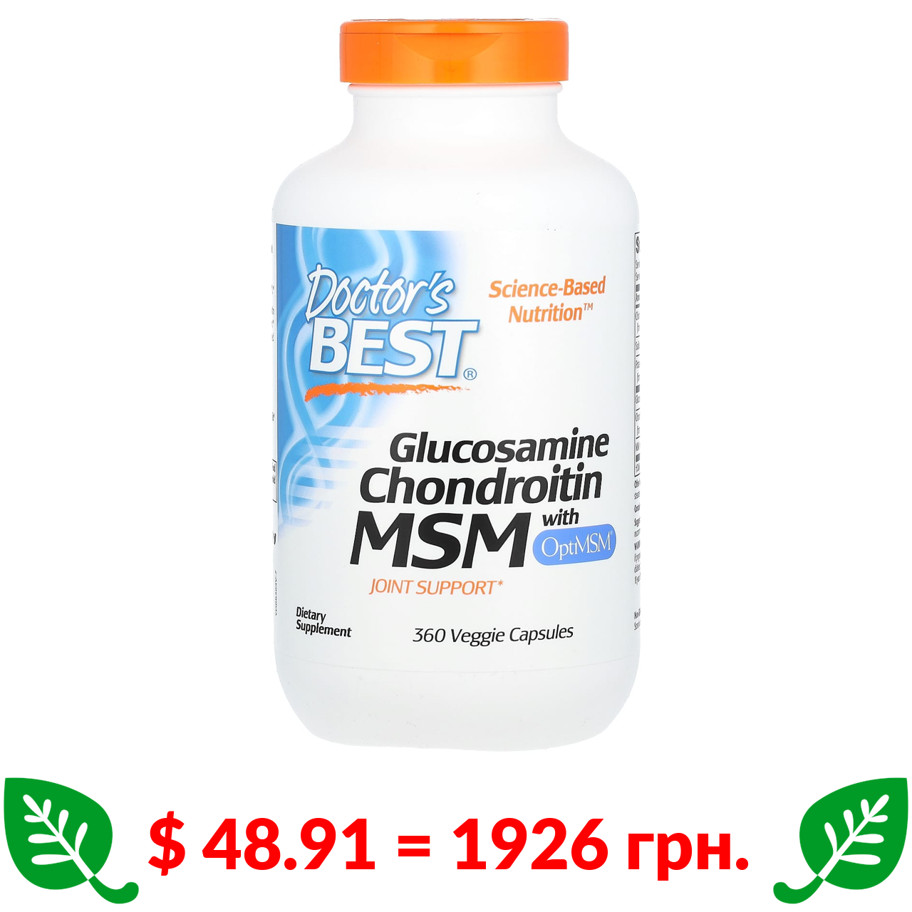 $ 48.91 = 1926 грн. Doctor’s Best, глюкозамін, хондроїтин і МСМ з OptiMSM, 360 рослинних капсул