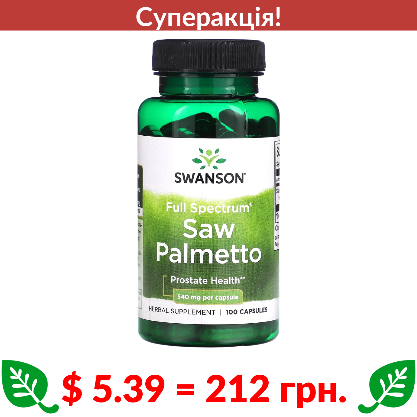 $ 5.39 = 212 грн. ???? cуперакція! ???? Swanson, сереноя, 540 мг, 100 капсул