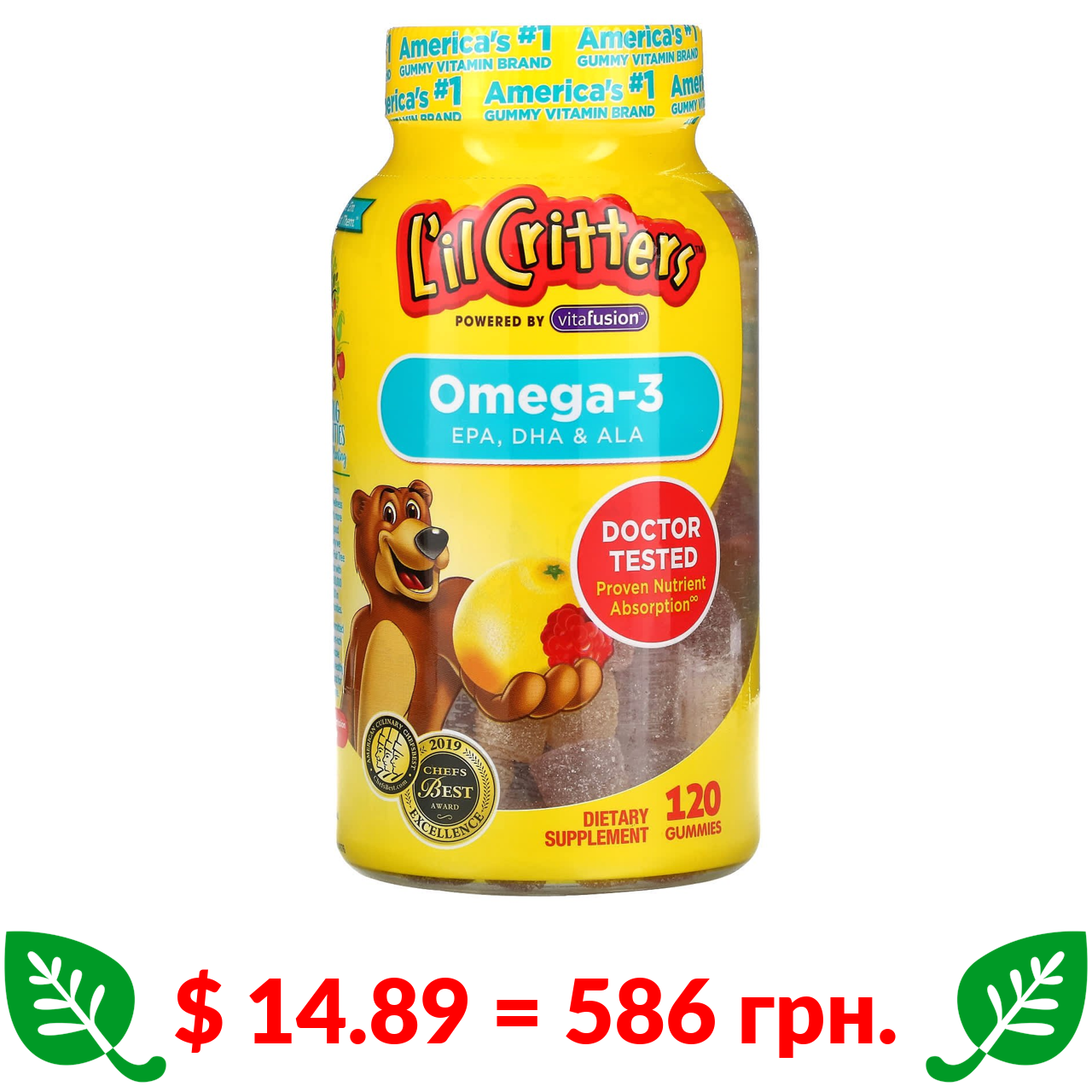 $ 14.89 = 586 грн. L’il Critters, омега-3, зі смаком малини та лимонаду, 120 жувальних цукерок