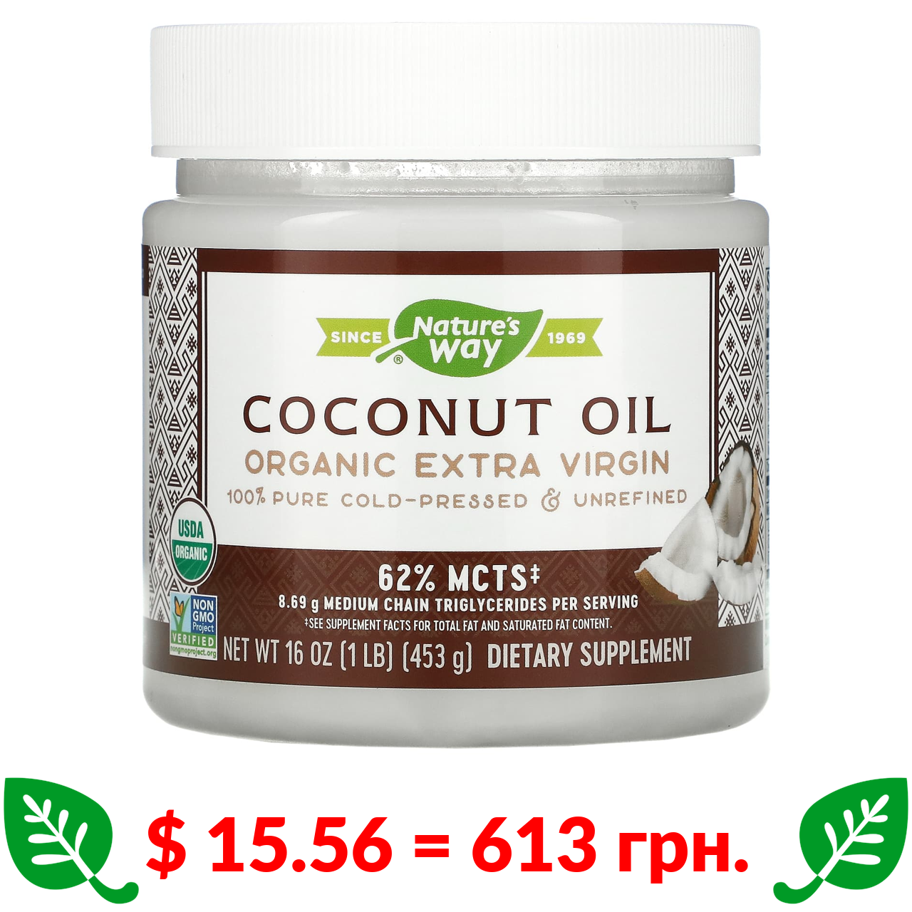$ 15.56 = 613 грн. Nature’s Way, органічна нерафінована кокосова олія першого віджиму, 453 г (16 унцій)