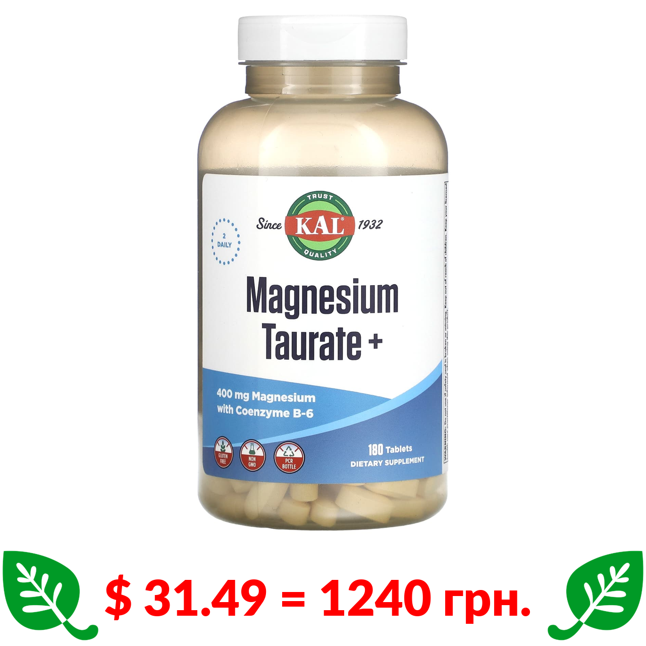 $ 31.49 = 1240 грн. KAL, таурат магнію+, 400 мг, 180 таблеток (200 мг у таблетці)