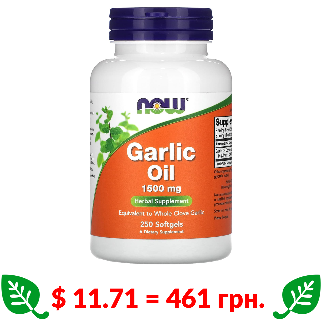 $ 11.71 = 461 грн. Now Foods, часникова олія, 1500 мг, 250 капсул