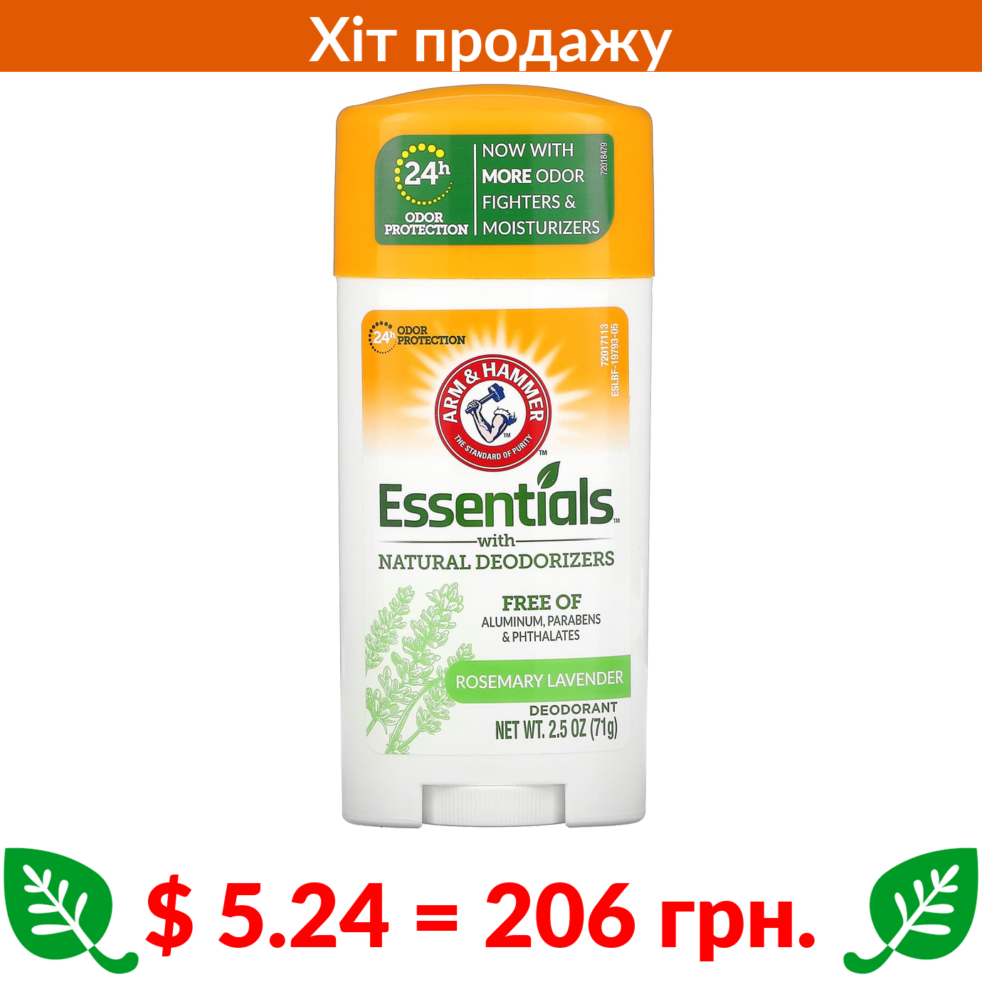 $ 5.24 = 206 грн. Arm & Hammer, Essentials, дезодорант із натуральними дезодорувальними речовинами, розмарин і лаванда, 71 г (2,5 унції)