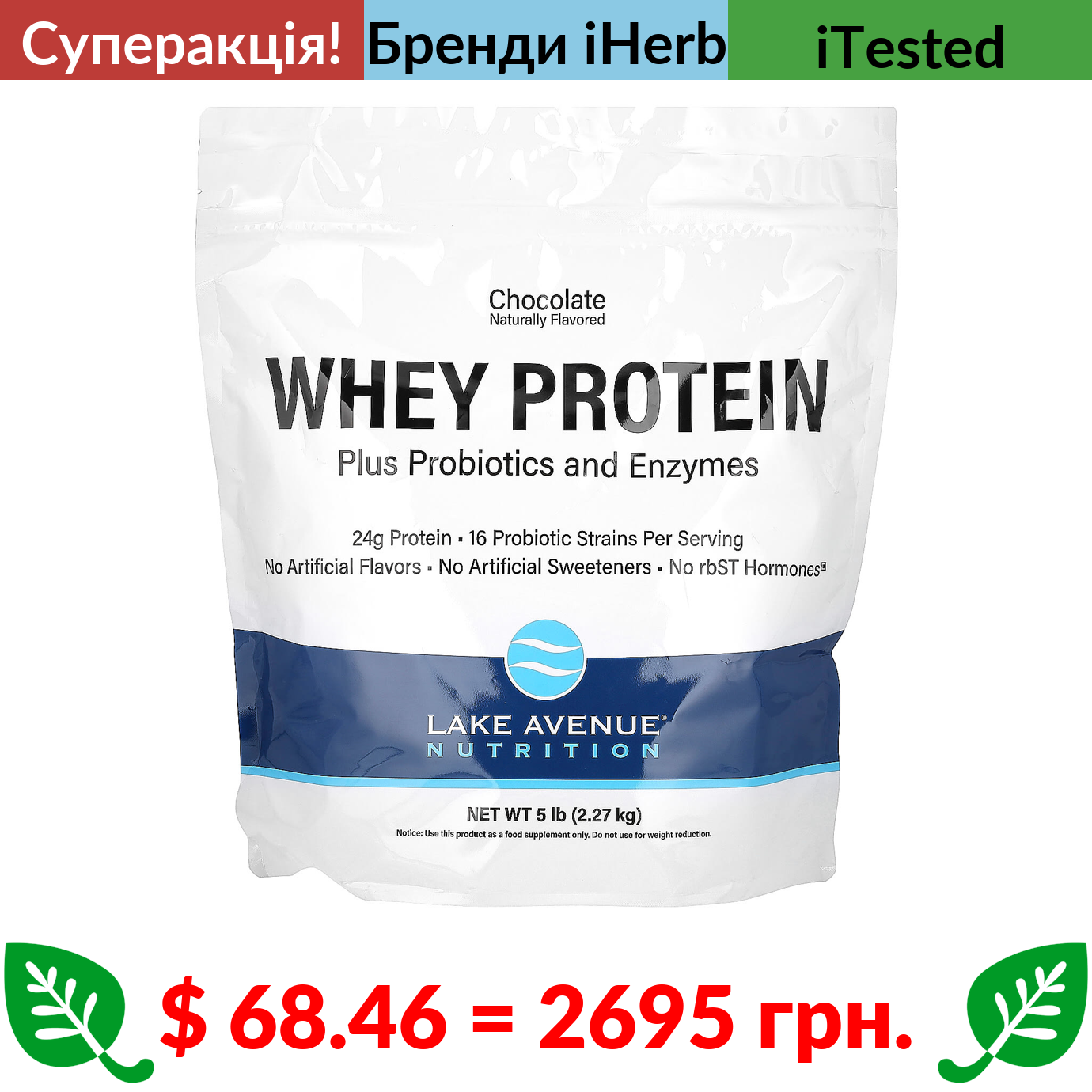 $ 68.46 = 2695 грн. ???? cуперакція! ???? Lake Avenue Nutrition, сироватковий протеїн і пробіотики, шоколадний смак, 2,27 кг (5 фунтів)