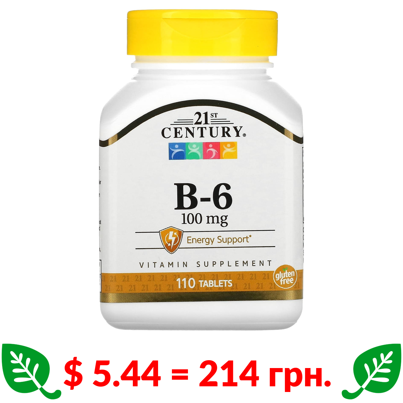 $ 5.44 = 214 грн. 21st Century, вітамін B-6, 100 мг, 110 таблеток